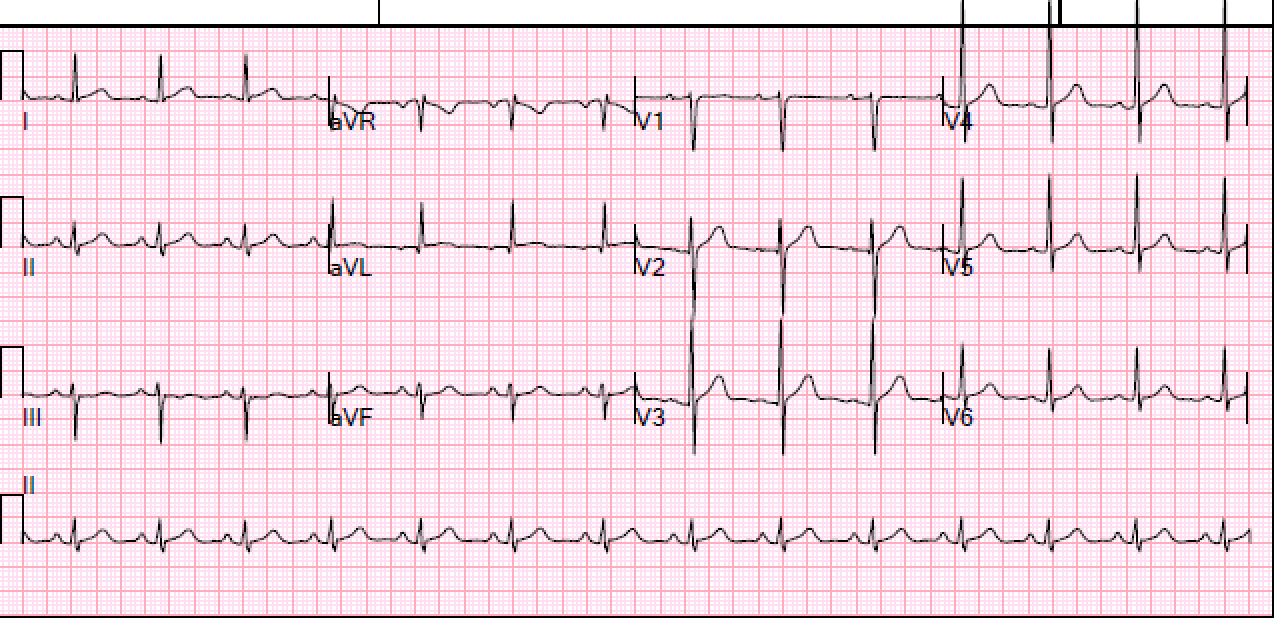 An ECG, seen below, was obtained that showed normal sinus rhythm with normal intervals and no ectopy.